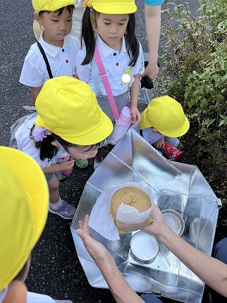 足利大学の総合研究センターにお邪魔して、中條先生にソーラークッカーを教えていただきました。太陽の光を使ってバナナパンケーキが焼けました。