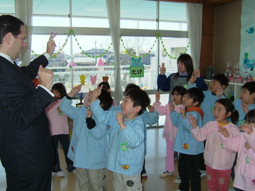 年長児クラスの英語あそび追加しました。アレック先生と記念撮影も!(平成24年度) |
