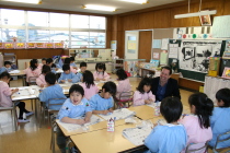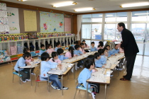 感謝の気持ちをこめてクラスのみんなで作ったカードを渡しました。 |