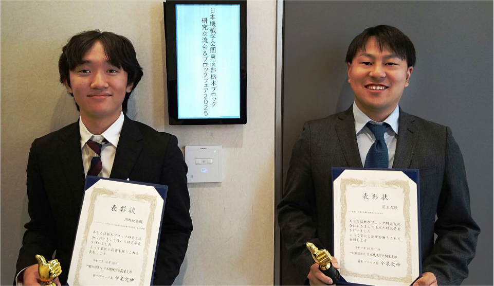 日本機械学会栃木ブロック研究交流会2025で学生2名が優秀発表賞をW受賞