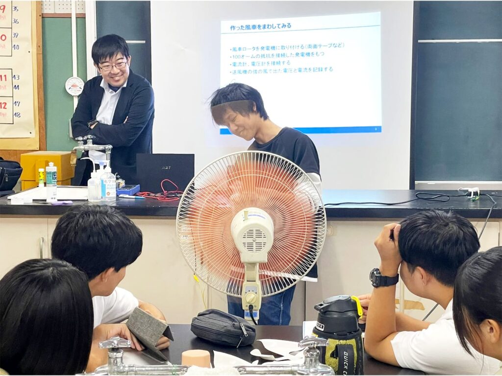 2025年9月19日(金)、高崎経済大学附属高校の1年理系オナークラスを対象に、機械分野の飯野光政准教授による「第3回風力実習」を実施しました。今回は、飯野研究室の4年生加藤大翔さんがアシスタントとして参加しました。
