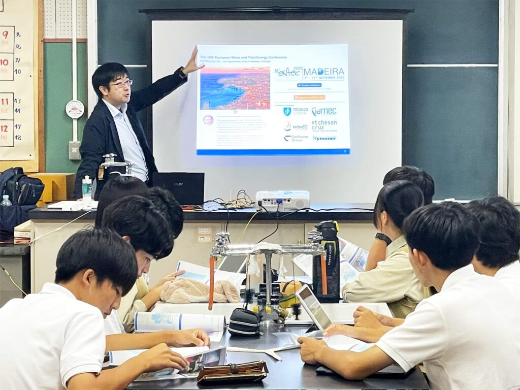また、その学会では、飯野研究室の大学院2年生の金井文泳さんが、波力発電に関する研究内容について発表したことも紹介しました。生徒の皆さんも、将来は世界を舞台に活躍してください、という言葉で本日の「第3回風力実習」は締めくくられました。