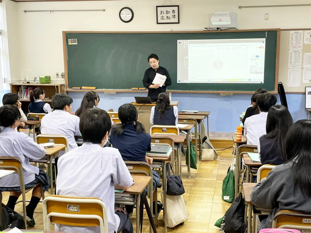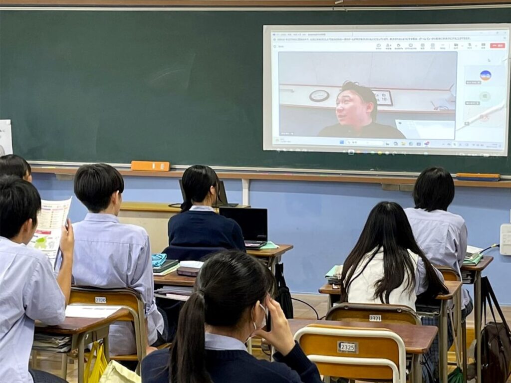 生徒たちは、興味関心のある地域(日光地区、藤原地区、栗山地区、足尾地区)ごとに4教室に分かれていたため、1つの教室から講話を配信しました。大野先生の熱のこもった授業は、配信先の教室でも画面を通して伝わっていました。