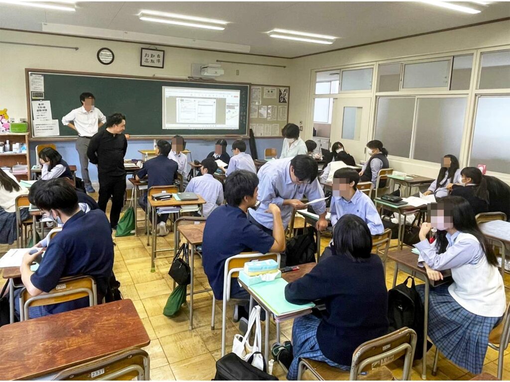 大野先生は、講義を配信した教室を回り、生徒からの質問に答えたり、励ましたりしていました。生徒たちは、自分たちに本気で向き合ってくれている大野先生の言葉に熱心に耳を傾けていました。