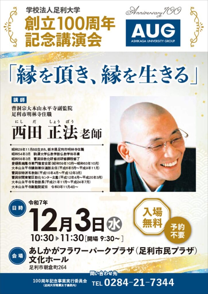 学校法人足利大学は、令和7年に創立100周年を迎えました。