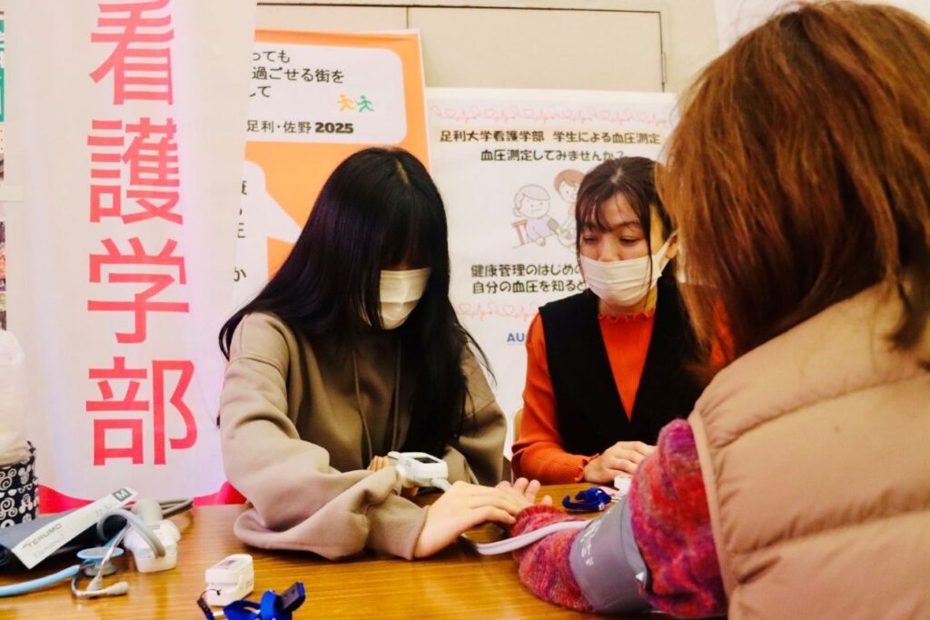 当日は、本学から5名の学生が参加し、会場運営やプログラムに積極的に関わりました。午前中は血圧測定ブースを担当し、来場された皆さまの健康チェックに協力しました。また、受付対応では来場者への案内を丁寧に行い、スムーズなイベント運営に貢献しました。