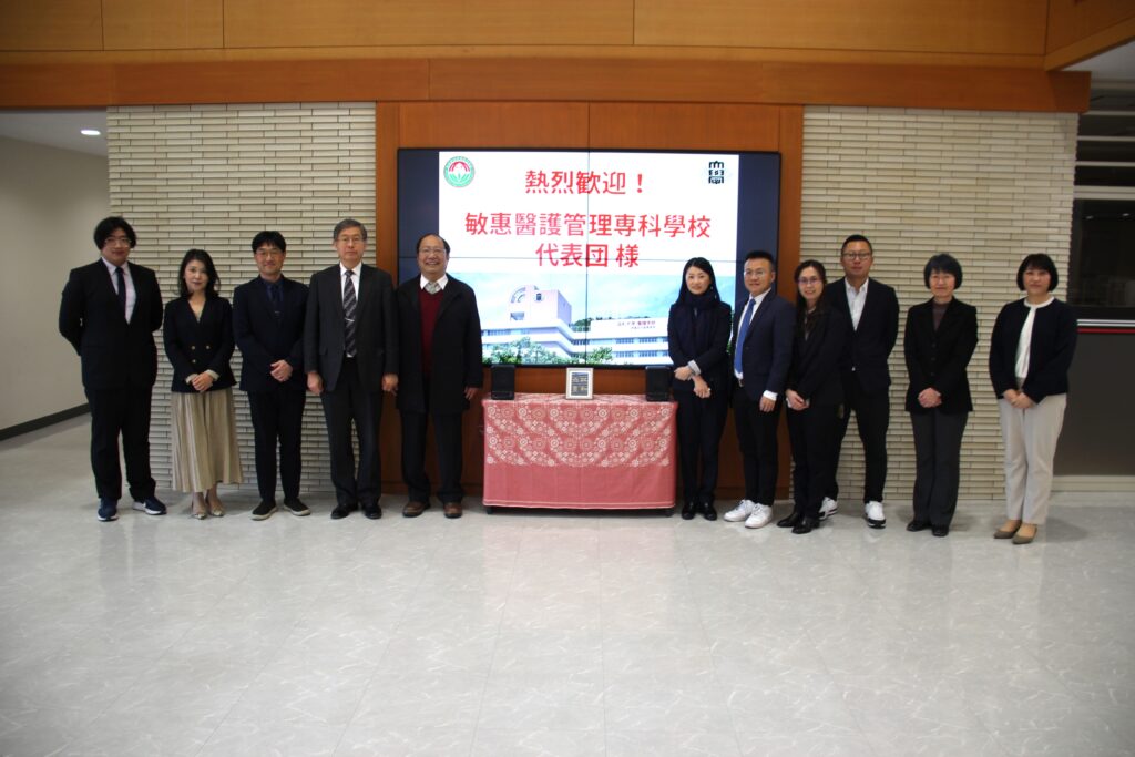 1月27日、台湾台南市にある敏惠醫護管理専科學校代表団が本城キャンパスに来訪しました。末武学長とのグリーティングの後、互いの教育内容の紹介があり、最後に本城キャンパスの設備見学をしました。施設見学をしながら互いの教育内容について熱心な意見交換が行われました。