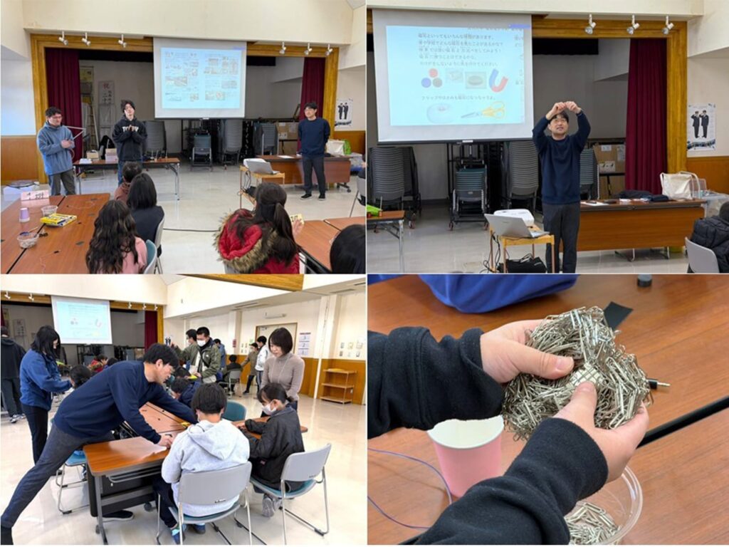 2026年1月24日(土)、足利市小俣公民館で、電気電子分野の横山和哉教授により、坂西「少年の砦」の一環として、「サイエンスマジック」(9:30~11:30)が行われました。三和公民館、葉鹿公民館、小俣公民館の合同開催で、小学校4年生から6年生、21名が参加しました。横山研究室の学生2名が、アシスタントとして協力してくれました。