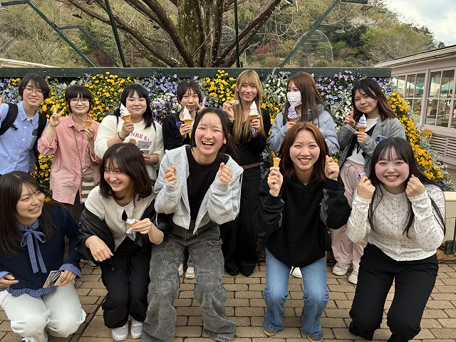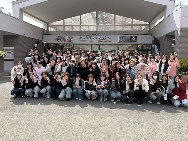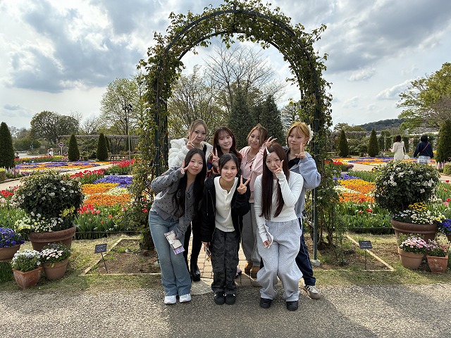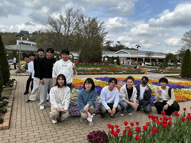 4月2日に入学式を終えたばかりの新入生たちは、学生生活や履修登録に関するガイダンスを受け続けてきましたが、この日は教室を離れて交友を深める貴重な機会となりました。園内には色とりどりのチューリップやパンジーが咲き誇り、甘い花の香りが漂うなか、新入生たちの笑顔も自然とこぼれていました。