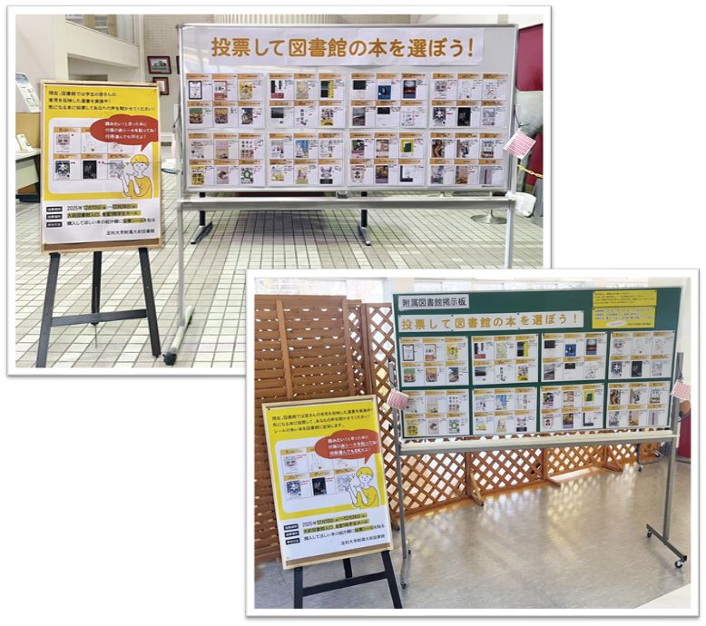 大前図書館入口、食堂1階学生ホールの2カ所合わせて284票の投票をいただきました。ご協力いただきありがとうございました。投票結果を元に図書館で本を購入します。どうぞお楽しみに!