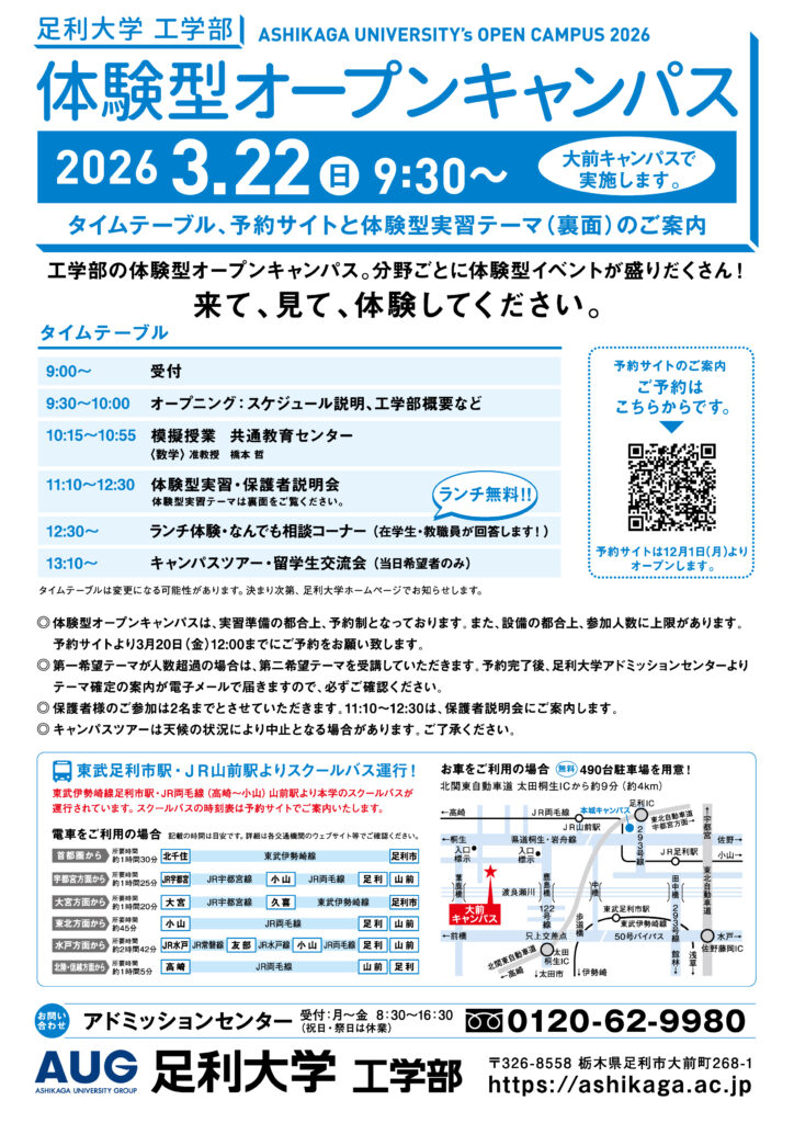 足利大学工学部では、本学受験希望者、オープンキャンパス参加希望者、