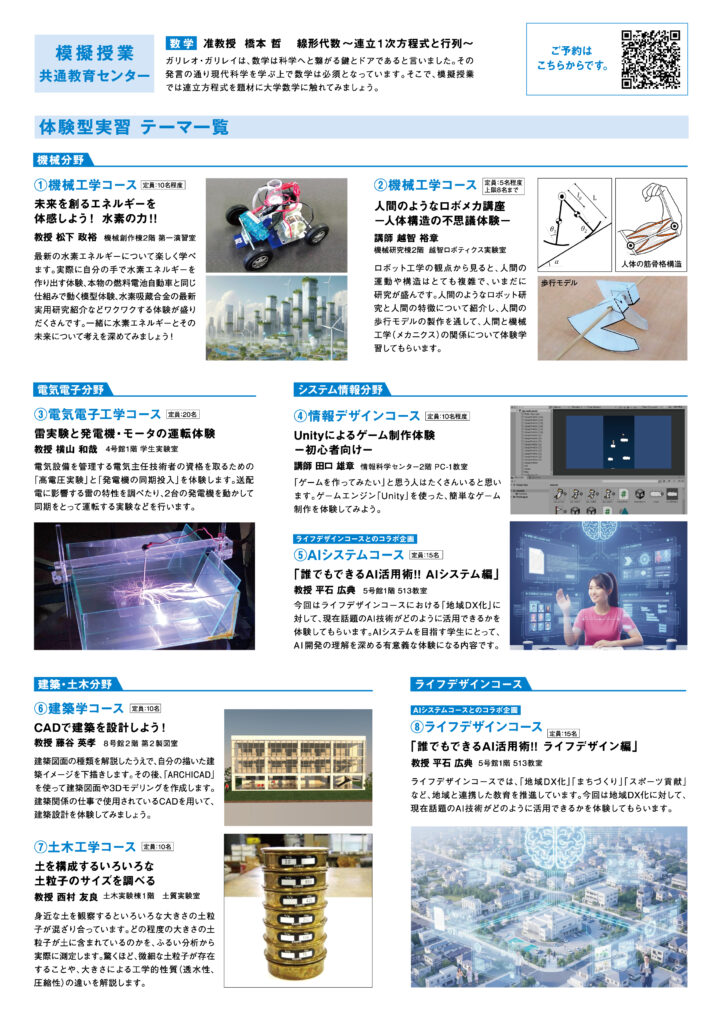 ※2025年3月23日(日)体験型オープンキャンパスのプログラム